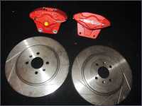 Bremszangen große Bremsanlage (rot) Paar plus Befestigungkit und Bremsscheiben alles Original Rover